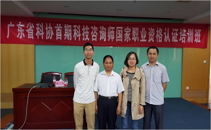 (科研處通訊員 曾婷)2016年4月6日-10日,廣東省首期科技咨詢師國家職業資格認證培訓班在廣東科學館正式開班。我校現代農業科技服務工程中心一行4人參加了此次培訓。廣東省科協黨組書記、副主席何真,廣東省人社廳職業技能鑒定中心副主任鄒炳輝,中國科學技術咨詢服務中心原主任盛小列等領導專家出席了開班儀式,來自全省科學系統的領導幹部及學會科技管理人員等120多名學員參加了為期五天的培訓。